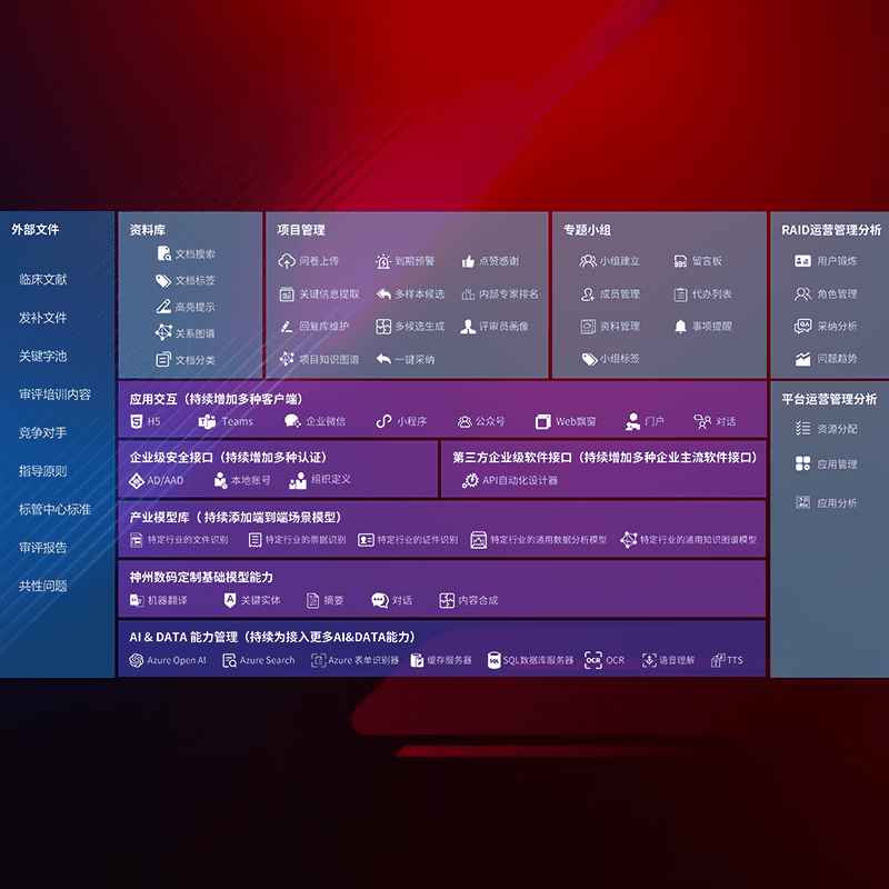 医疗器械产品上市前,,,要熟悉严格与繁复评审标准,,整理分析监管机构指导文件中的海量信息。。。企业急需一个智能化解决方案,,,,提升知识管理效率,,,,提高评审通过率,,,以提升其市场竞争力。。。